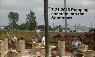 Pumping concrete into the sono tubes for the 14 columns. The temperature was 90 degrees.